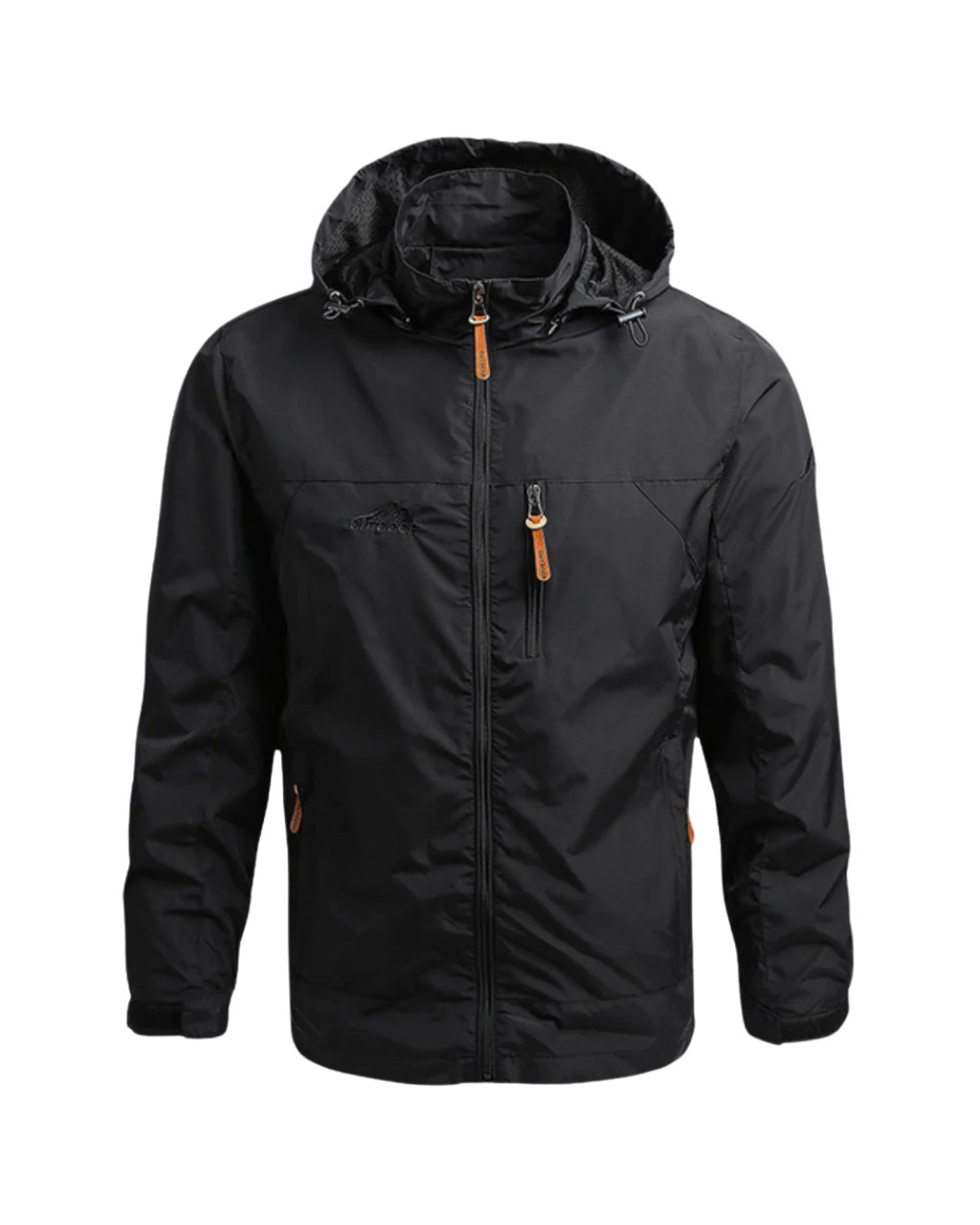 Jaqueta corta vento confeccionada em material impermeável, desenvolvida para atividades ao ar livre. Oferece proteção contra vento e chuva, com design funcional para uso em diferentes condições climáticas.